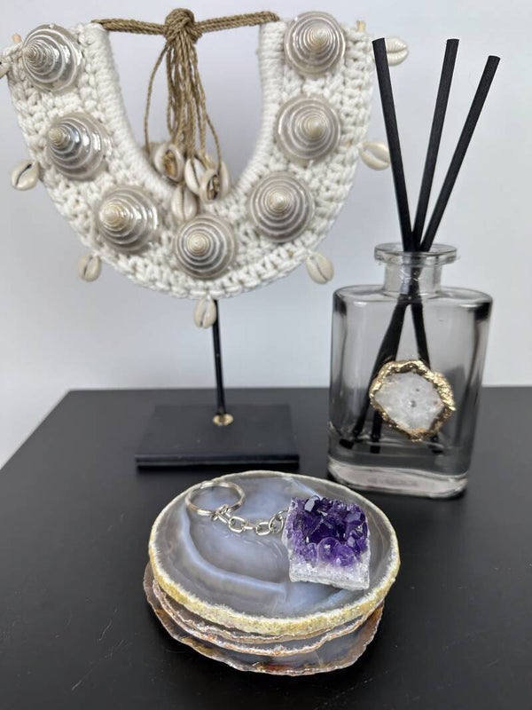 Ontdek de ruwe pracht van onze amethist sleutelhanger! Voeg een vleugje natuurlijke schoonheid toe aan je stijl met dit unieke accessoire. Perfect voor je sleutels of tas, is het een subtiele blikvanger die je overal kunt meenemen. Laat de ruwe charme van de amethist je look verfraaien!